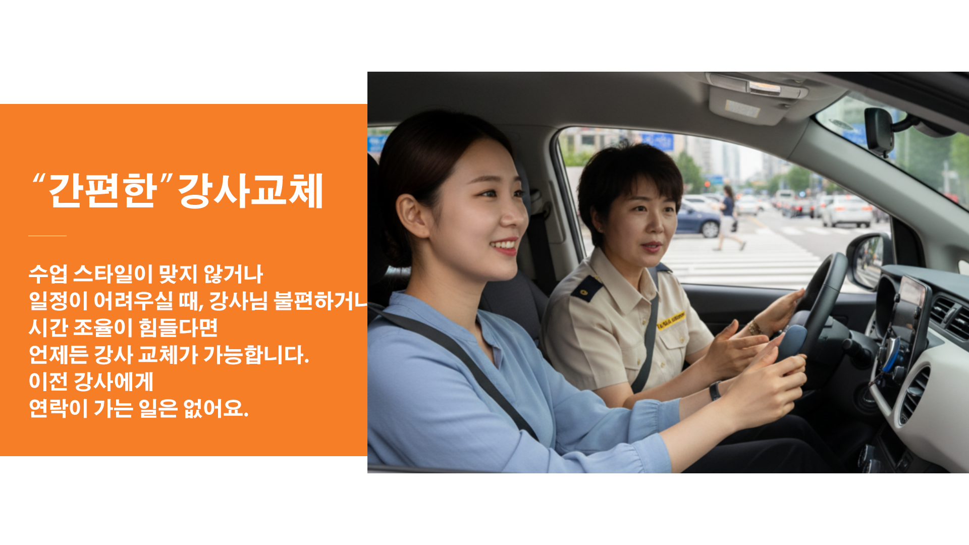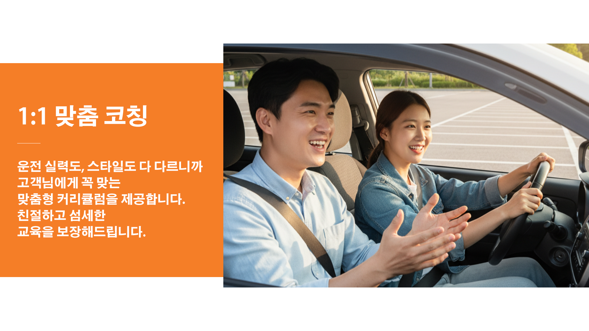 매회차 종료 후 운전 습관 리포트를 제공하며, 필요 시 보완 세션을 추가합니다. 헷갈린 구간은 다음 회차에 재현 훈련합니다.